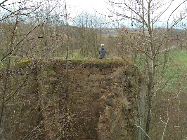 Auto zaparkowaliśmy sobie w miarę blisko na poboczu przy pobliskich domkach i udaliśmy się do jaskiń jak na mapce. Już po chwili naszą uwagę przykuł ogromnych rozmiarów wapiennik, a raczej jego pozostałości. Sądząc po rozmiarach tego pieca do wypalania wapienia to kamieniołom musiał wydobywać całkiem spore ilości tego surowca. Podobne obiekty często można spotkać na Dolnym Śląsku. Generalnie nie przygotowaliśmy się do czołgania po jaskiniach. Tak z nudów przyjechaliśmy zobaczyć co tak naprawdę się tutaj znajduje. A szkoda bo okazało się, że jaskinie są całkiem spore, ale przy eksploracji trzeba się nieźle wynorać, więc my tylko tak "testowo" zajrzeliśmy do środka ^^